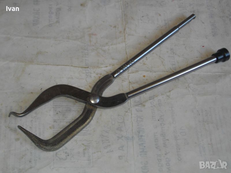 Клещи / инструмент fза монтаж/демонтаж на спирачни накладки. Предназначение- за пружини на накладки. Приложение - за монтаж на пружини на спирачни накладки. Клещите са висококачествени и много здрави. Използват се за сваляне и монтаж на възвратни пружини на спирачните накладки на спирачните барабани. В основата на една от дръжките има устройство за демонтиране на капаци на пружините на опорния диск. Инструментите са висококачествени стоки. Тегло приблизително 0.6 кг.