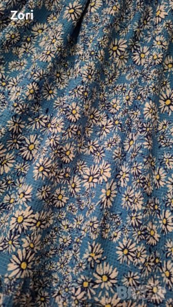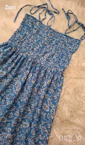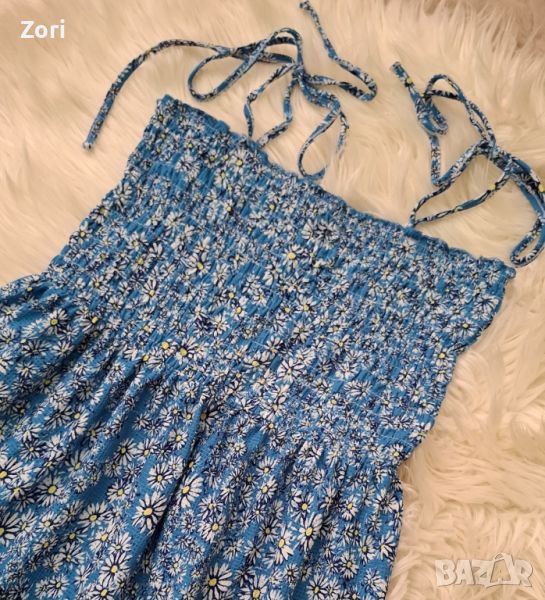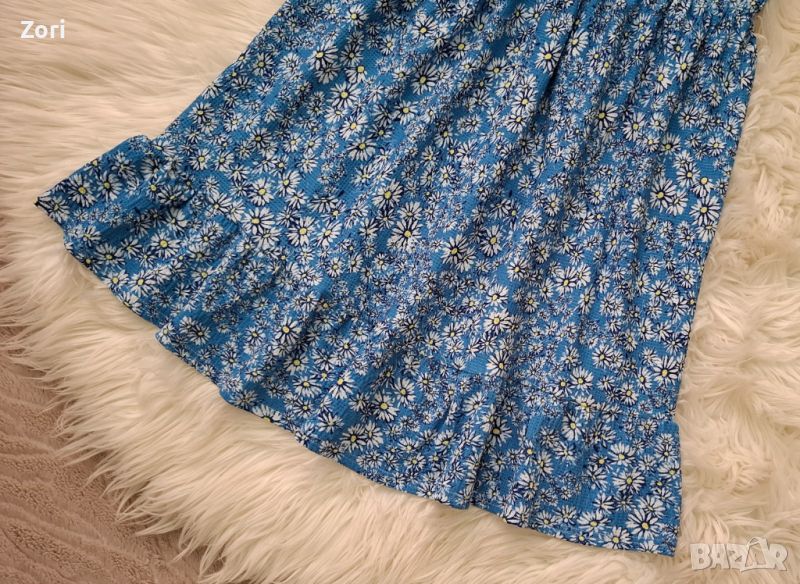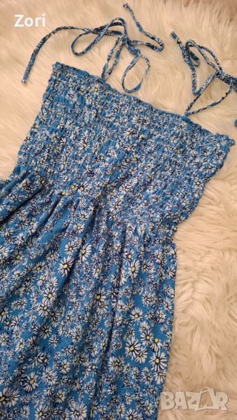 Светлосиня рокля с тънки презрамки в щампа маргаритки → Обява 46749062