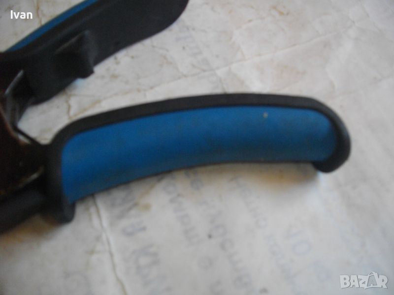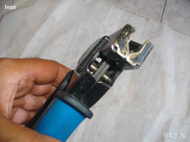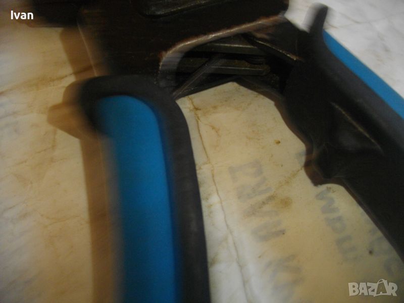 Малки френски монтажни ръчни профи клещи, със сини инпрегнирани гумирани покрития на дръжките за монтаж ва всякакви дюбели М3-М6 в гипсокартон.
