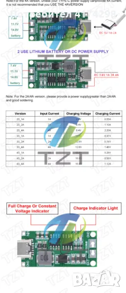 Ток на зареждане: 0.28A (версия 1A); 0.56A (версия 2A); 1.12A (4A версия)