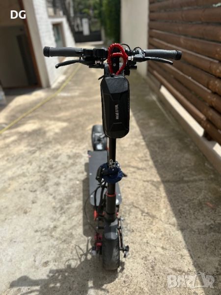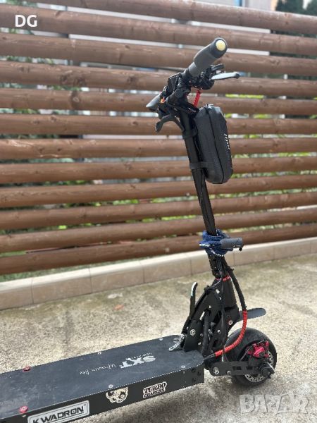Зашеметяващите 2 x 1800 W макс. мощност на двигателя - т.е. комбинирано задвижване на всички колела от 3600 W, буквално експлодират от двата безчеткови мотора на главината и говорят сами за себе си. Предният двигател може да се включва или изключва според нуждите. В комбинация с 60V бордово напрежение, тези два мотора катапултират звяра до макс. скорост до 80 км/ч. Наклони от 15-20° (еквивалентни на над 30%) са детска игра в режим на пълно натоварване. Да се говори за възможен пробег е изключено с толкова пресилен мотор - той е около 50 км само с един двигател и икономично каране и пада до около 20-25 км при използване на двата двигателя.