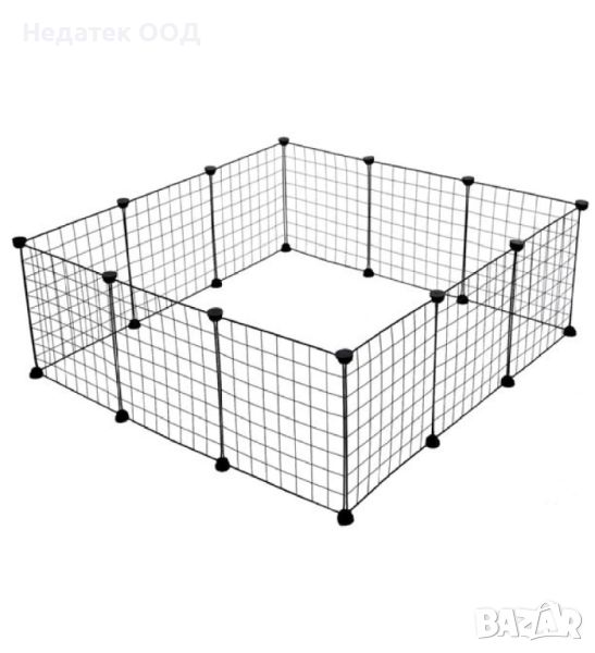 Пакетът съдържа 12 метални панела, здрав материал, размери 35x35 см и пластмасови конектори за монтаж. Можете да ги съедините във всякакъв размер или форма, които желаете, тъй като те могат да бъдат съединени вертикално чрез съответно регулиране на конекторите. Много лесно се сглобява или транспортира. С това можете да ограничите животните в пространството, което желаете. Когато не ви трябва можете да го разглобите. Подходящ е за вътрешна и външна употреба.