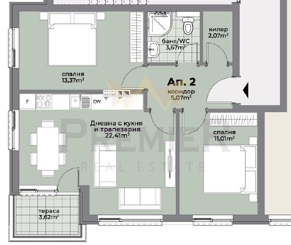 Имоти Премиер представя тристаен апартамент в новострояща се сграда.