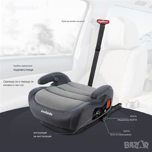 Повдигащите седалки Jovikids осигуряват на по-големите деца безопасно и комфортно пътуване в колата.