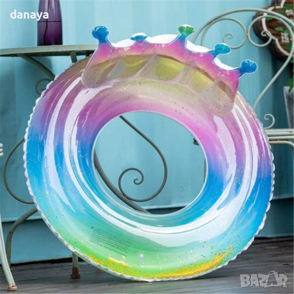 надуваеми пояс с брокат Корона, с диаметър 100 см – идеалното допълнение за вашите летни приключения! Този стилен пояс се отличава със забележителен дизайн, изпълнен с брокат, който блести на слънцето, придавайки му изискан и привлекателен вид. Създаден от висококачествени и здрави материали, поясът осигурява безопасност и комфорт във водата. Перфектен за плажа, или басейна, надуваемият пояс с облегалка Корона ще направи вашата почивка незабравима и изпълнена с удоволствие. Поръчайте го сега и се насладете на лятото с блясък!