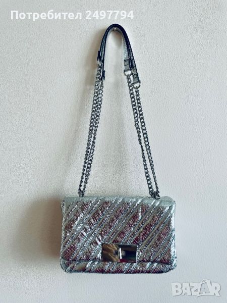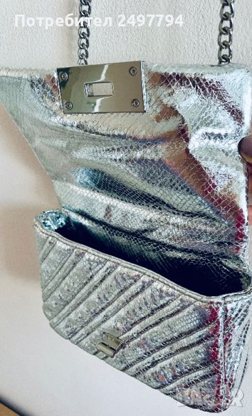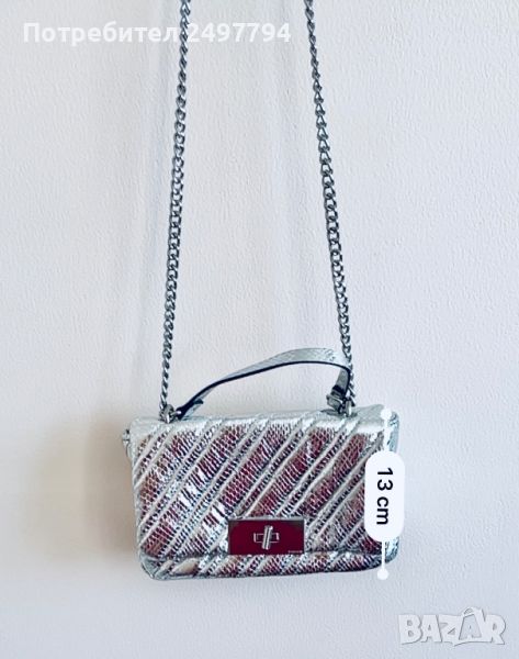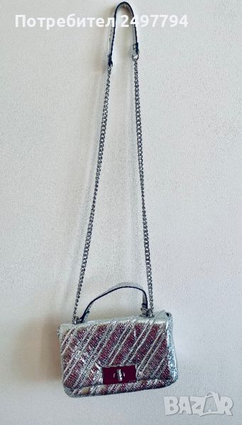 Малка елегантна чантичка Parfoir, сребриста, имитация на кожа, размерите се виждат на някои от снимките