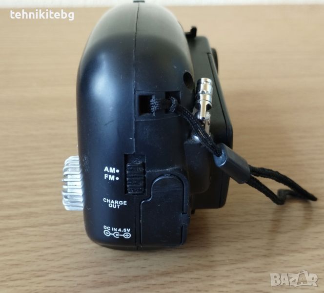 Портативно туристическо радио с LED фенерче и динамо . Тествано с батерии , работи и лови добре станциите в града , въпреки че му е счупена антената . Не знам как работи на динамо и не е тествано с него . Може да работи и на ток чрез адаптер . Лично внесено от Англия .