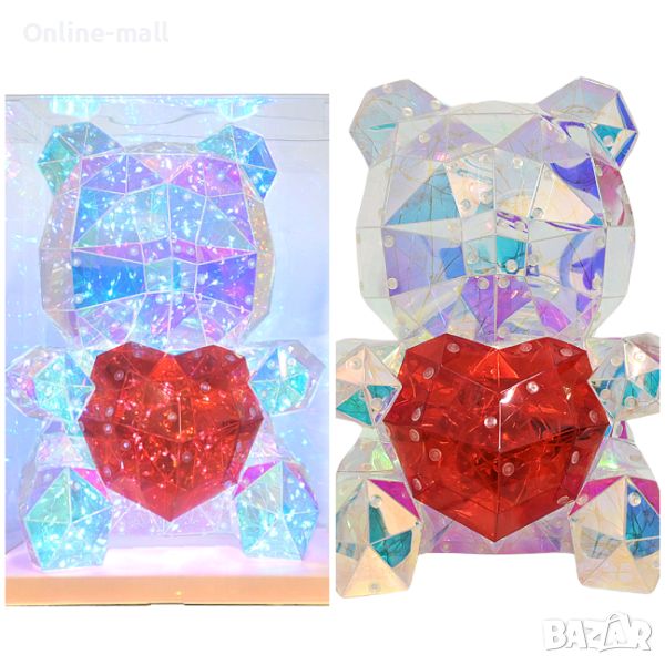 * Вариант 1- 3D Светеща Фигура Мече със сърце 30 см х 20см х 20см, Бяла светлина- 119.99лв;