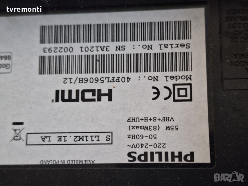 Power Supply PLDE-P007A 2722 171 90318 3PAGC20023A Philips 40PFL5606H/12 for 40inc DISPLAY LK400D3LB83 Борда е гарантирано работещ Демонтиран от телевизор Philips модел 40PFL5606H/12 със счупен дисплей LK400D3LB83 тествана от нашия техник Ремонт на всички марки съвременни телевизори