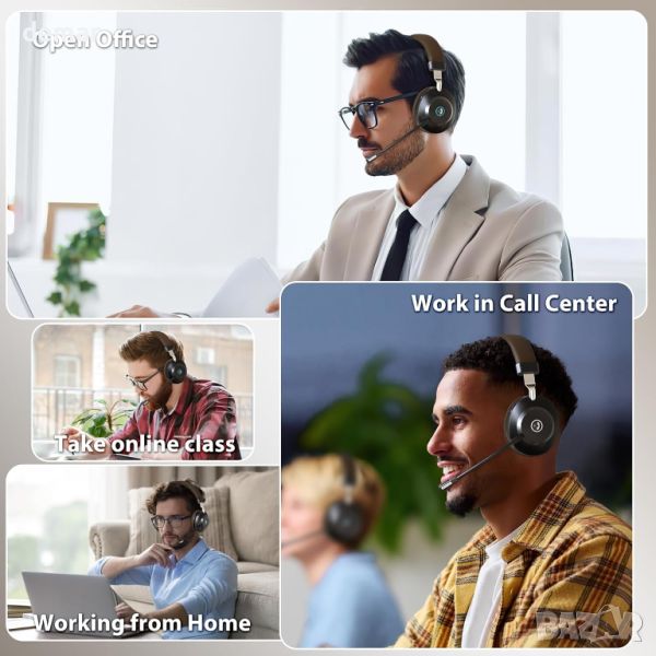 Безжични слушалки, Bluetooth слушалки с микрофон, AI шумопотискащ микрофон и USB донгъл, 45 часа