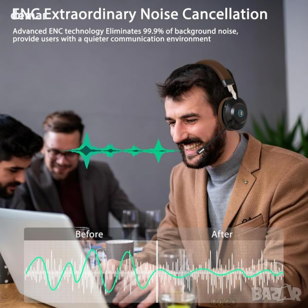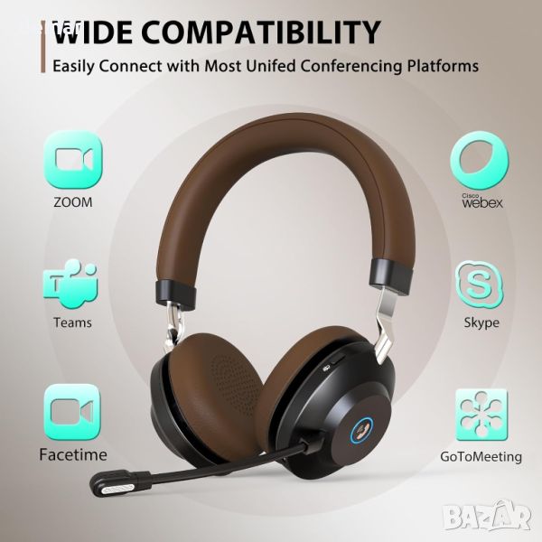 Безжичните слушалки с микрофон разполагат с усъвършенствана ENC технология за премахване на до 99% от околния шум, осигурявайки ясни гласови повиквания. Включва бутон за изключване на звука за поверителност, ергономична регулируема лента за глава, ултра меки наушници от мемори пяна и лек дизайн (232g/8.1oz) за комфорт, дори и с очила. Bluetooth V5.0 и USB донгъл предлагат безпроблемна безжична връзка, а 45-часов живот на батерията позволява дълго използване между зарежданията. Качеството на HiFi стерео звука подобрява удоволствието от музиката и е съвместимо с основни платформи за конференции като Skype, Zoom, Webex, Whatsapp, MS Teams и Webinars.