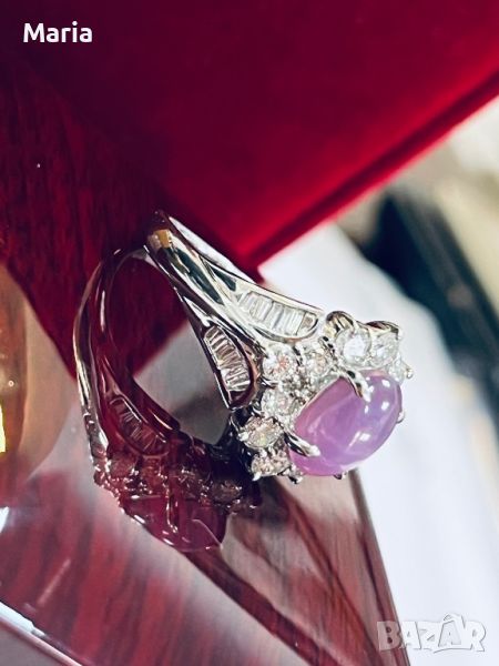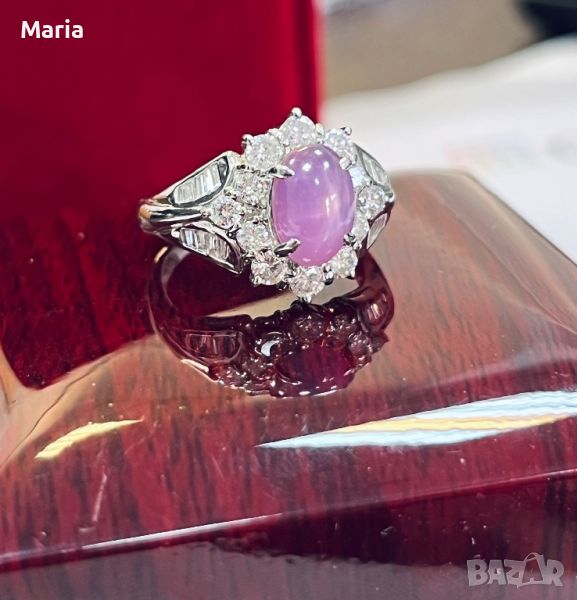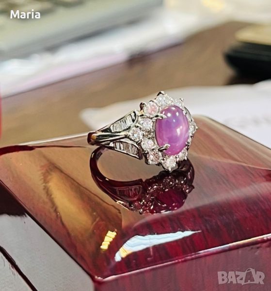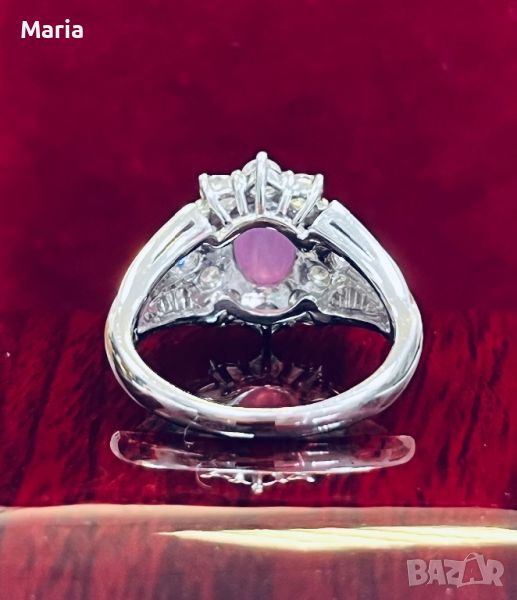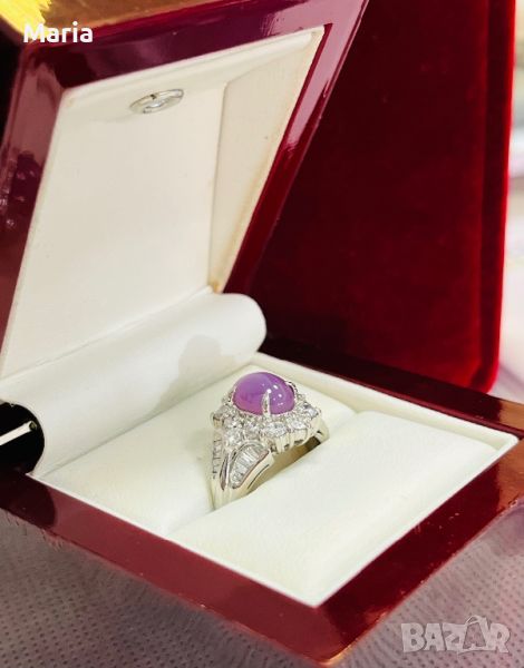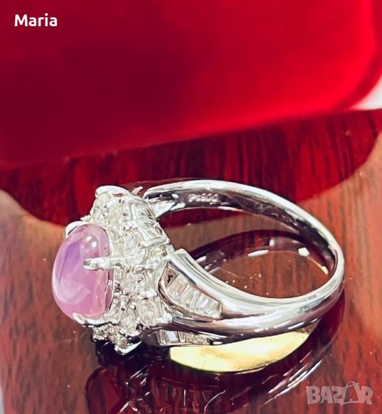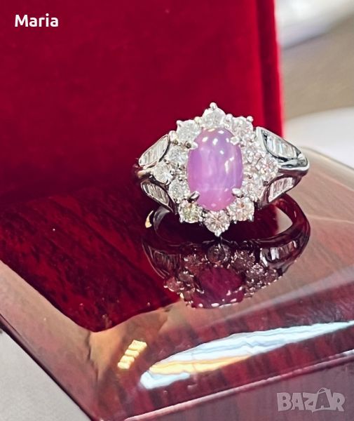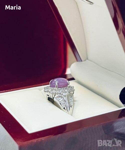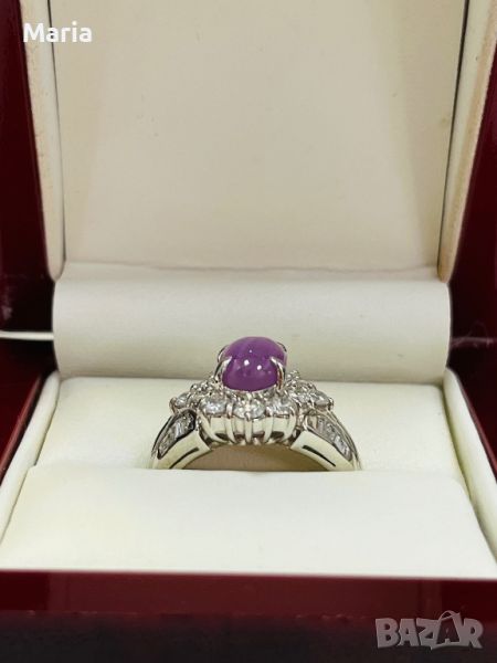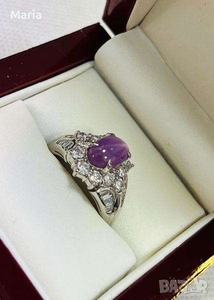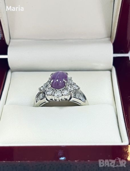 Платинен пръстен със звезден сапфир и брилянти → Обява 46754461