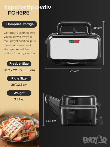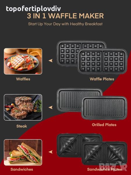 Грил/Тостер и Гофретник Fohere Sandwich Maker, 1200 W 3-in-1,Гаранция