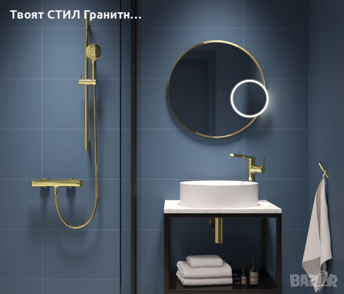 - Елегантно покритие: Изящтно златно, добавя луксозен характер към банята.