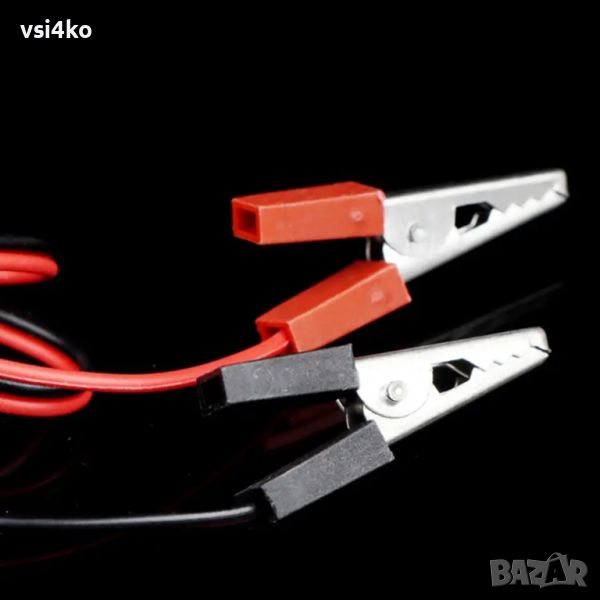 - Захранване: Чрез щипки, които могат да бъдат свързани към акумулатор или друг източник на захранване от 12 волта.