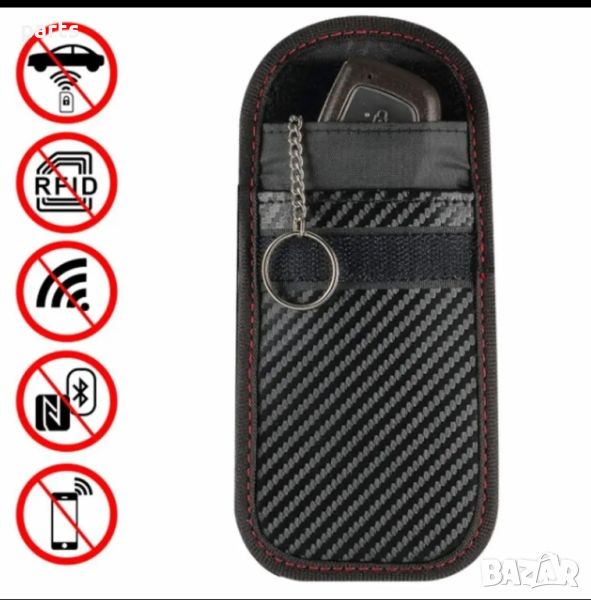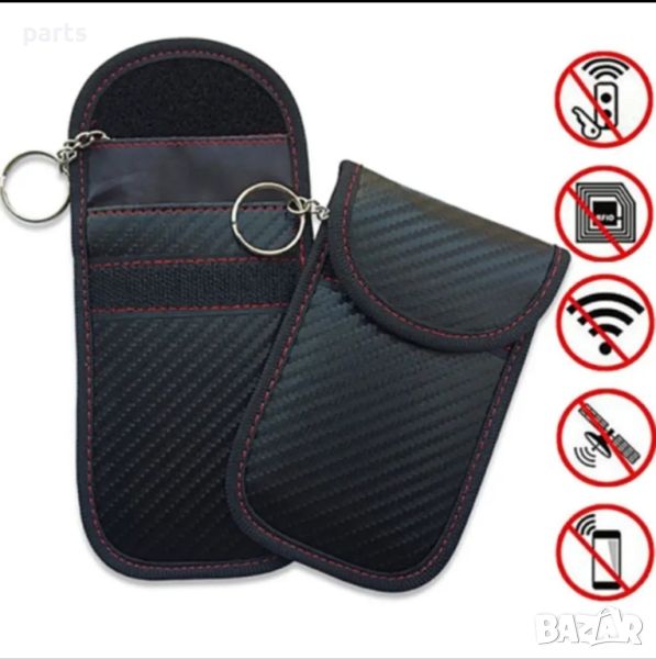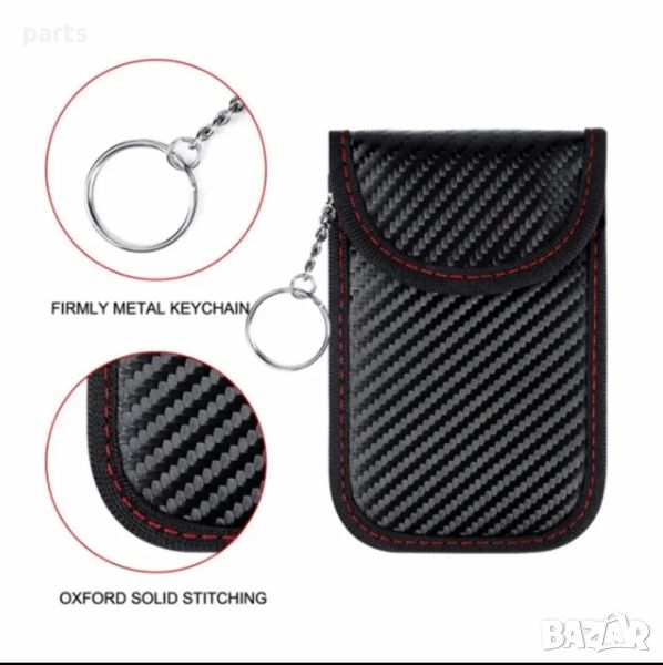 Има два джоба Ефективна защита на автомобила от кражба "за куфар" Комплектът включва: Капак против кражба за ключ, дебитна карта Оригинална опаковка Спецификации: Калъф за сигнална брава Състояние: Ново Тегло (с опаковката): 0.30 Тип: Капак за ключ със сигнал RFID GSM GPS блокиране Цвят: Черен Материал: карбон Модел: Silent Pocket Faraday Размери: 14.3x9.5 cm.