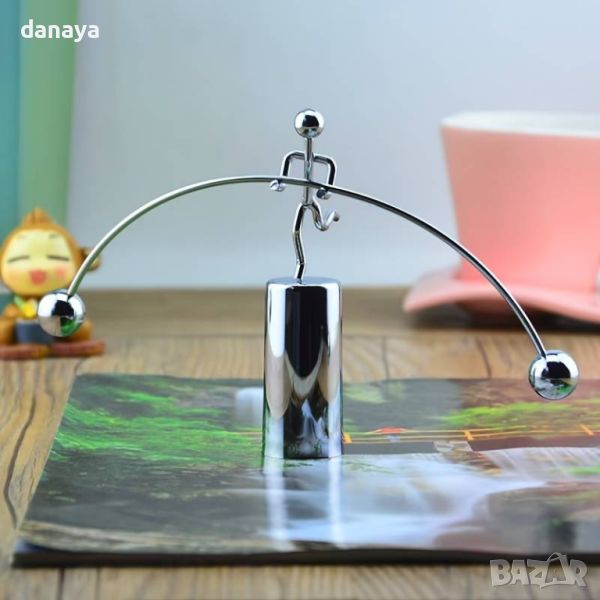Фигура сувенир Баланс на тежести. Чудесна декорация за бюро или за дома. Офис играчка за разпускане от стрес и ежедневие. Чудесна идея за подарък. Махалото работи без батерии, просто го залюлейте и готово. Гледайки махалото, лесно може да премахнеш нервното напрежение след дълъг работен ден.