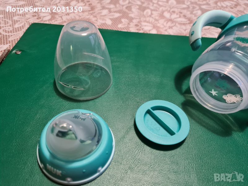 Шишето е ново. Не е използвано. Само е измито след покупката, но така и не го ползвахме, защото прескочихме този етап и преминахме на шише със сламка.