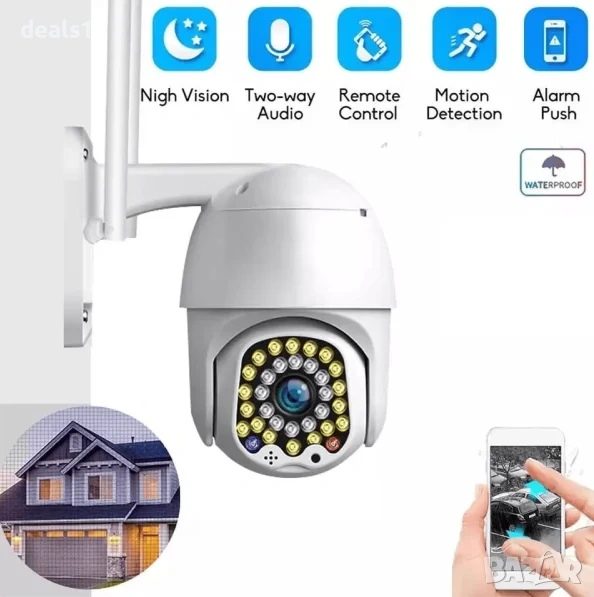 – Външната IP камера с 5MP резолюция предлага надеждно видеонаблюдение с ясна картина и видимост до 30 метра, дори при слаба светлина, благодарение на комбинираното нощно виждане с бели и инфрачервени LED диоди.