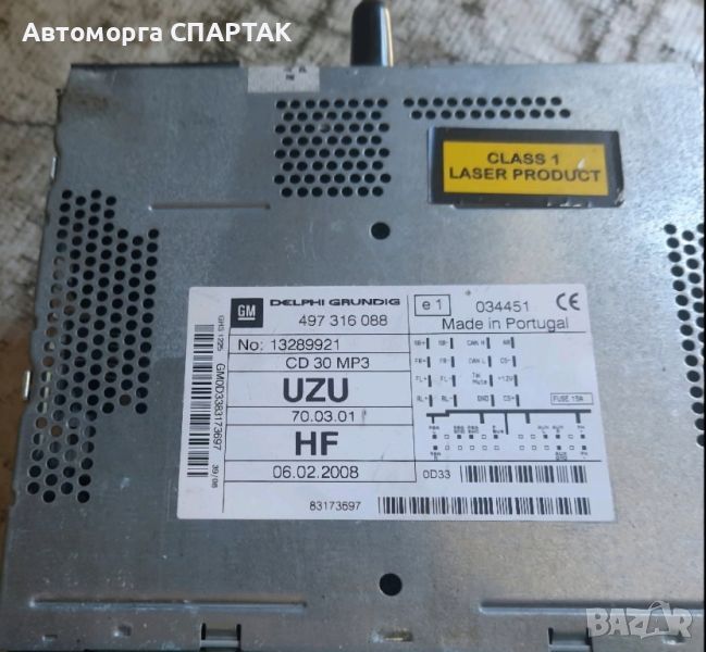 РАДИО CD MP3 OPEL CORSA D 497 316 088 / 497316088 / 13 289 919 HD / 13289919HD / CD30 → Обява 46758954