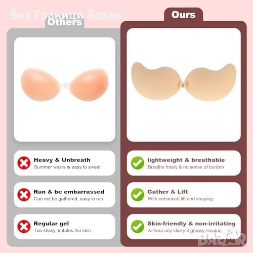 Нов Невидим повдигащ сутиен 2 броя - Без презрамки и много удобен чашка Е