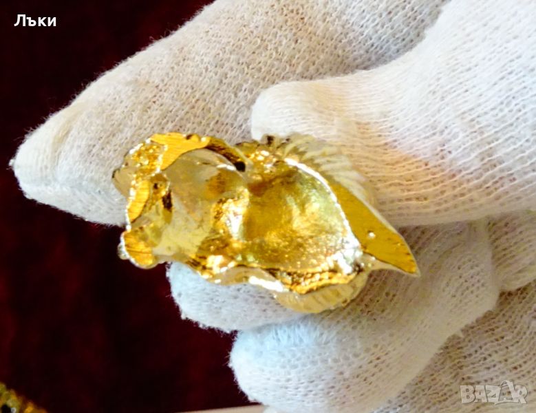 цинк с дебела позлата.Има здрава халкичка за окачване.Представлява поставка за използвана