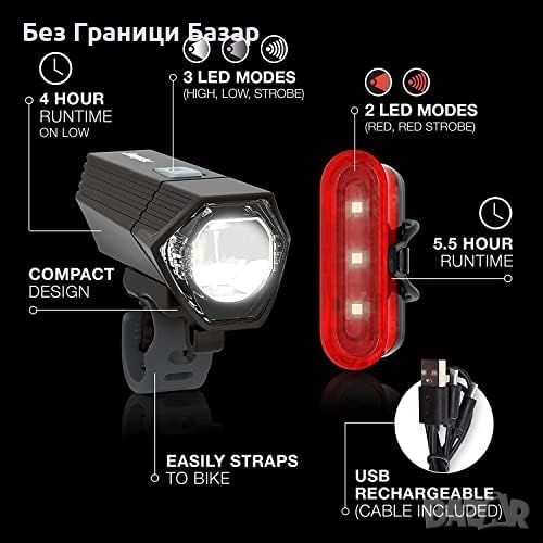 Комплект презареждаеми велосипедни лампи (предна и задна)