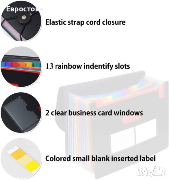 3 бр. комплект SAYEEC Разширяващ се органайзер за документи с 13с цветни джобове Rainbow Accordion