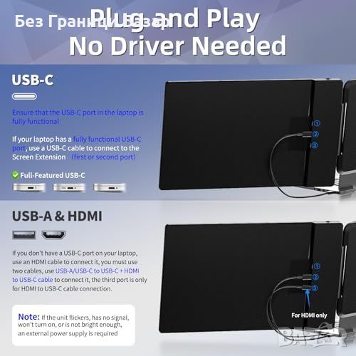 Нов 14 инча IPS FHD 1080P HDMI/USB-A/Type-C Лаптоп Монитор Екстендер