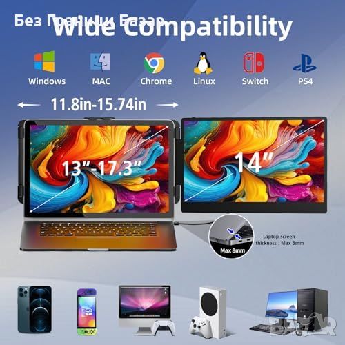 Съвместимост с лаптопи 13"-17" и различни операционни системи (Windows, MacOS, Linux, Android)