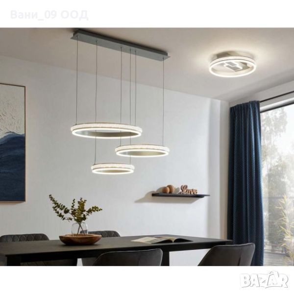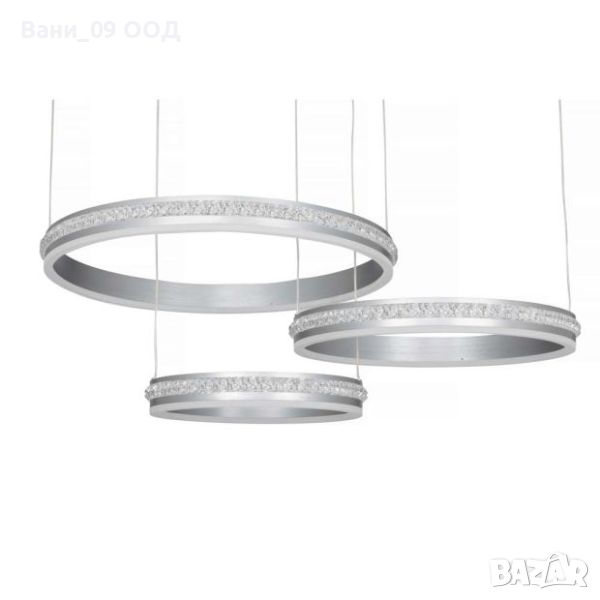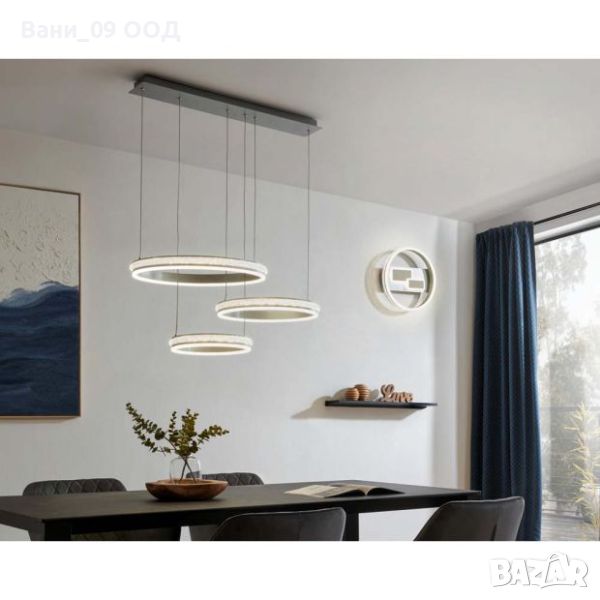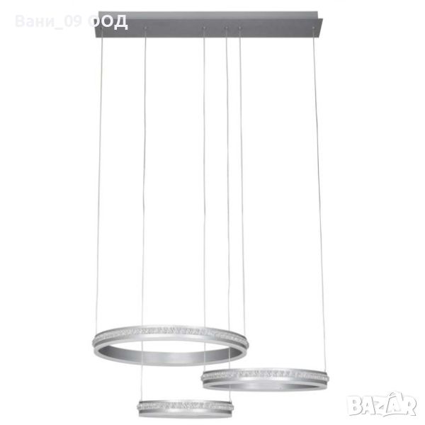 Модерно осветително тяло, спускащо се елегантно от тавана с три обръча с различен диаметър - нещо, което бързо ще привлече фокуса в помещението. Имате възможност да поставите този LED пендел в трапезарията, в дневната зона или в офиса, с гаранция за подчертан акцент в интериора.
