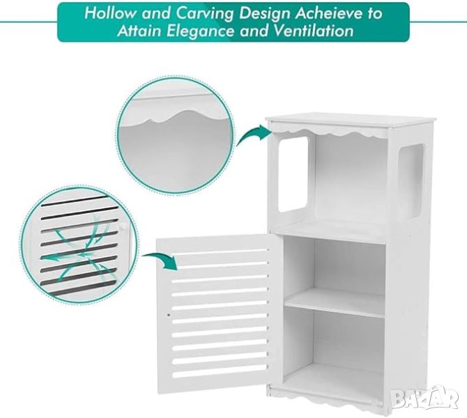 Красив интериор: белите шкафове се вписват във всяка стая в дома. Този рафт е не само рафт за баня, но и рафт за кухня, малка библиотека или рафт за витрини. В този рафт можете да съхранявате кърпи, тоалетни принадлежности, козметика и спално бельо, лосион, шампоан, грижа за кожата, парфюм, книги, играчки и растения.