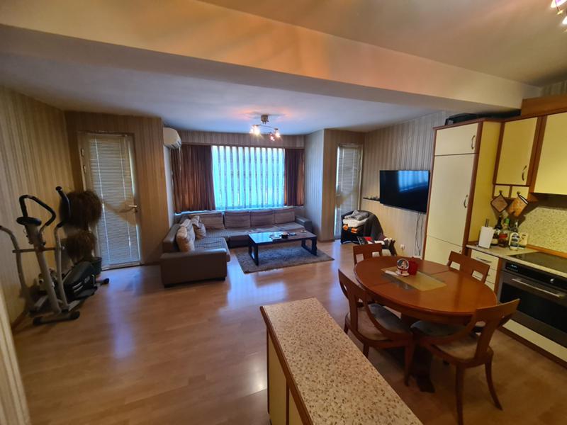Подовата настилка е ламинат, дървен паркет и гранитогрес. Дограмата е алуминиева.