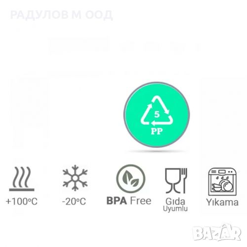 • Пластмасова прозрачна кутия, подходяща за съхранение и пренасяне на храна.