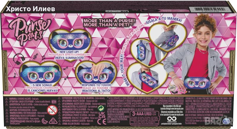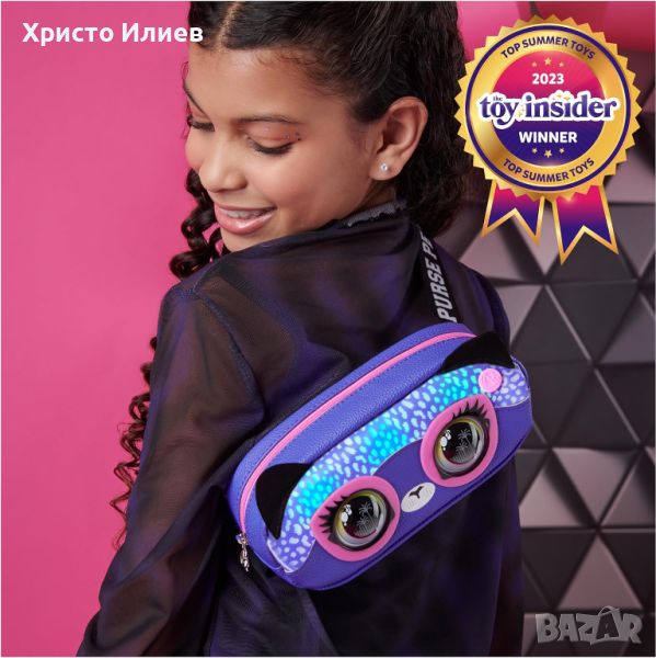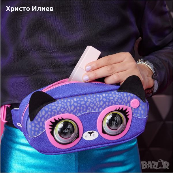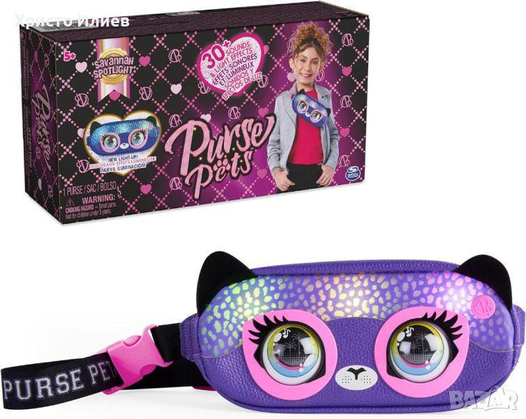 С изразителните очи и светлинните ефекти чантичката Purse Pets Savannah Spotlight привлича вниманието. Мигащите светлини в цветовете на дъгата са особено атрактивни. Светлините могат да се коригират според тоалета - тон в тон или като контраст. Разбира се, не липсват звуци и вградена музика. Отделението с цип побира всичко, от което се нуждаеш, а презрамката може да се регулира. Внимавай, този гепард не мига като другите чанти Purse Pets, за да не отвлича вниманието от красивите светлини.