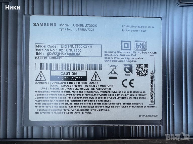 Main Board BN94-12798L / BN41-02635A от телевизор SAMSUNG UE49NU7302K Платката е работеща свалена от работещ телевизор със счупен дисплей модел на дисплея CY-CN049HGLV2H Изпращам по ЕКОНТ с опция тест и преглед!!! С оглед и проба на това, че модулите нямат гаранция, след прегледа, теста и заплащането не приемам възражения и ракламации, щото предварително всички платки и модули са тествани и в изправно състояние се пращат!!!