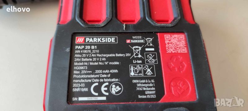Акумулаторна Li-ion батерия PARKSIDE® 20V/2Ah - PAP20 B1