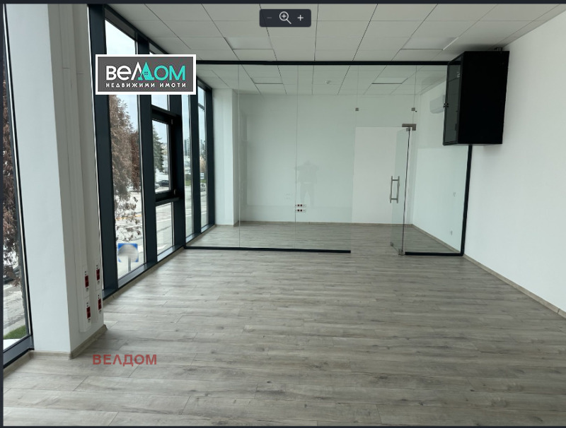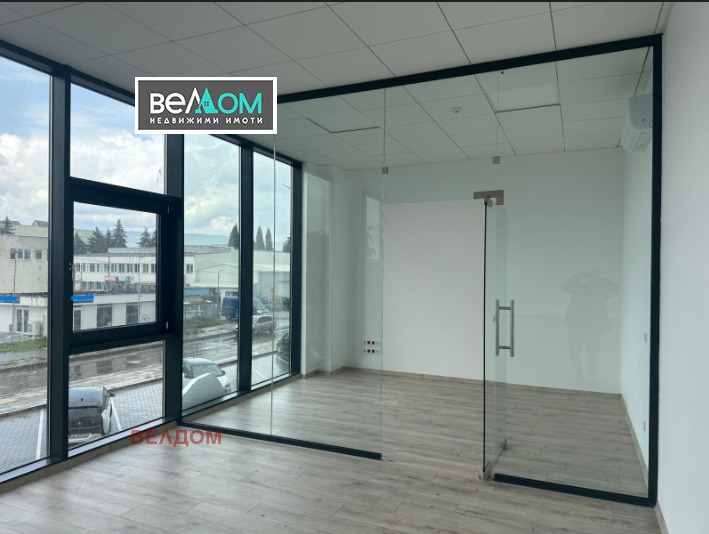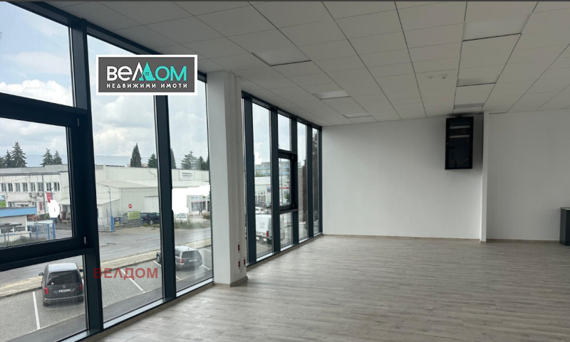 Агенция ВЕЛДОМ дава под наем чисто нови офиси с модерна визия в Западна Промишлена Зона. Разположени на втори етаж над партер с лице към главна улица с постоянен автопоток и паркоместа отпред. Място лесно за обяснение и реклама. Офисите са довършени до ключ, необзаведени (снимките са илюстративни). С различни размери: 60 м2, 90 м2, 160 м2 до 300 м2. Цени: 8 евро/м2. Наем за паркомясто 27 евро/м2. Цените са без данъка. Асансьор.