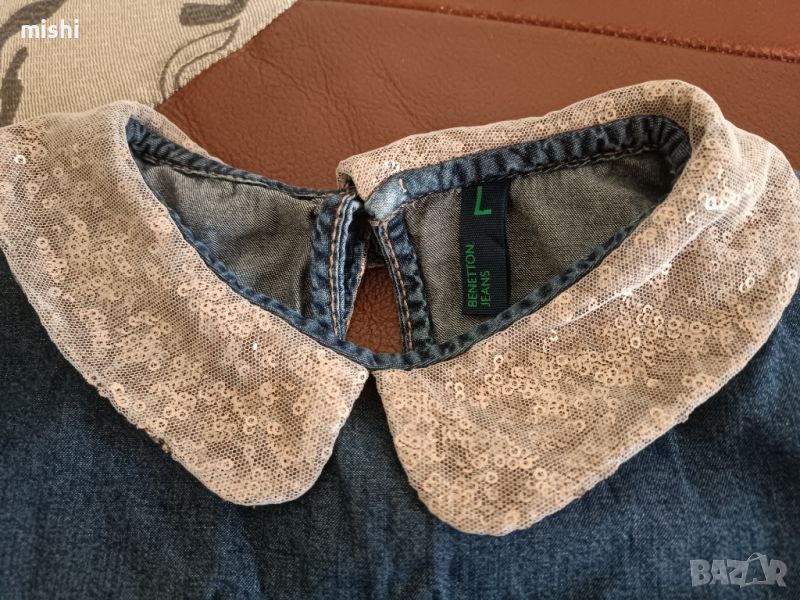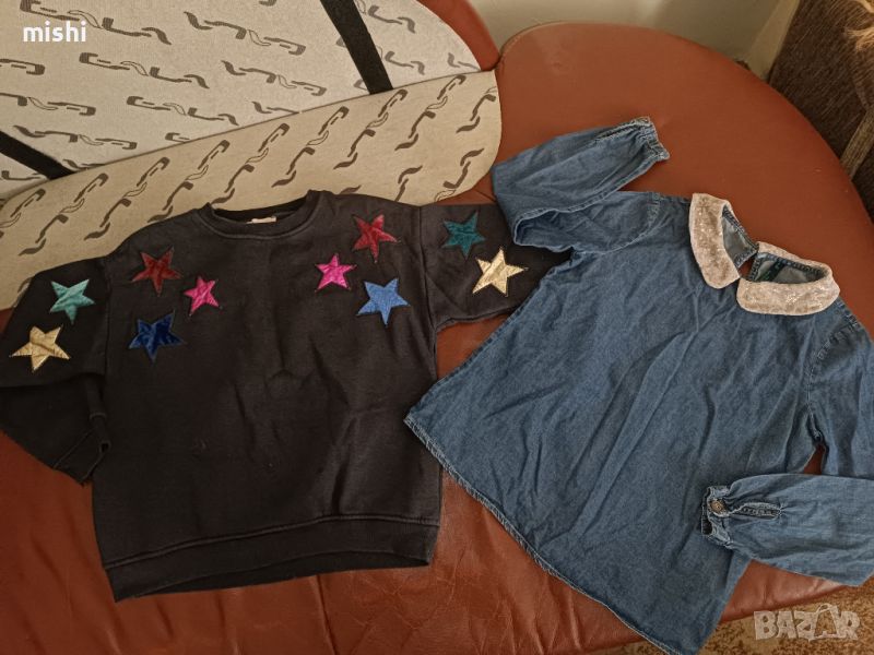 Доказани марки, много красиви блузи, ефектни, удобни, и двете са носени малко и са като нови. Блузата zara е ватирана. Блуза zara със звезди: ширина от мишница до мишница - 47 см, дължина при гърба - 51 см. Дънкова блуза Benetton: ширина от мишница до мишница - 41 см, дължина ръкав - 48 см, дължина при гърба (без яката) - 48 см.