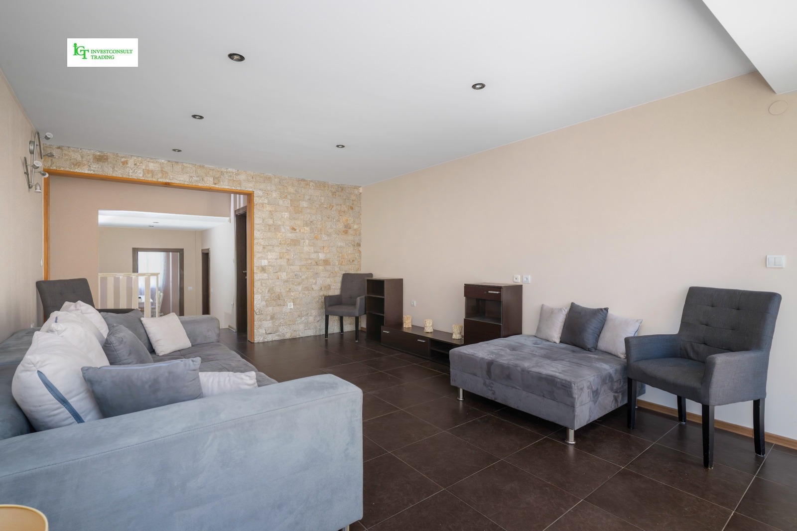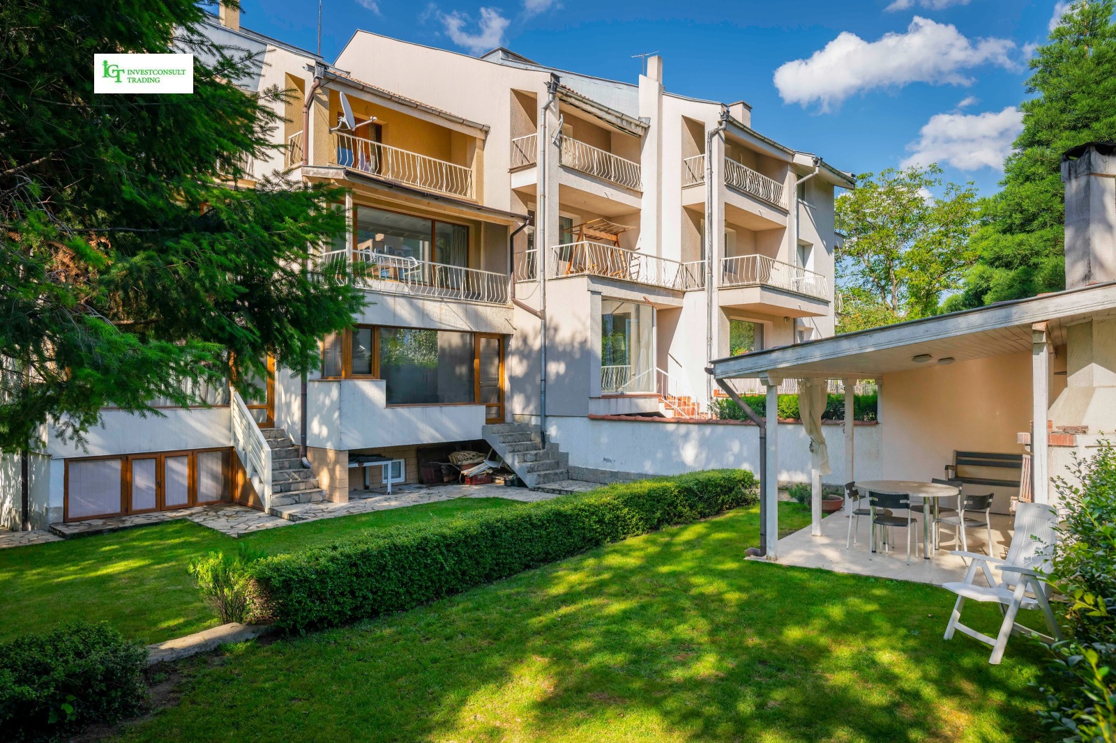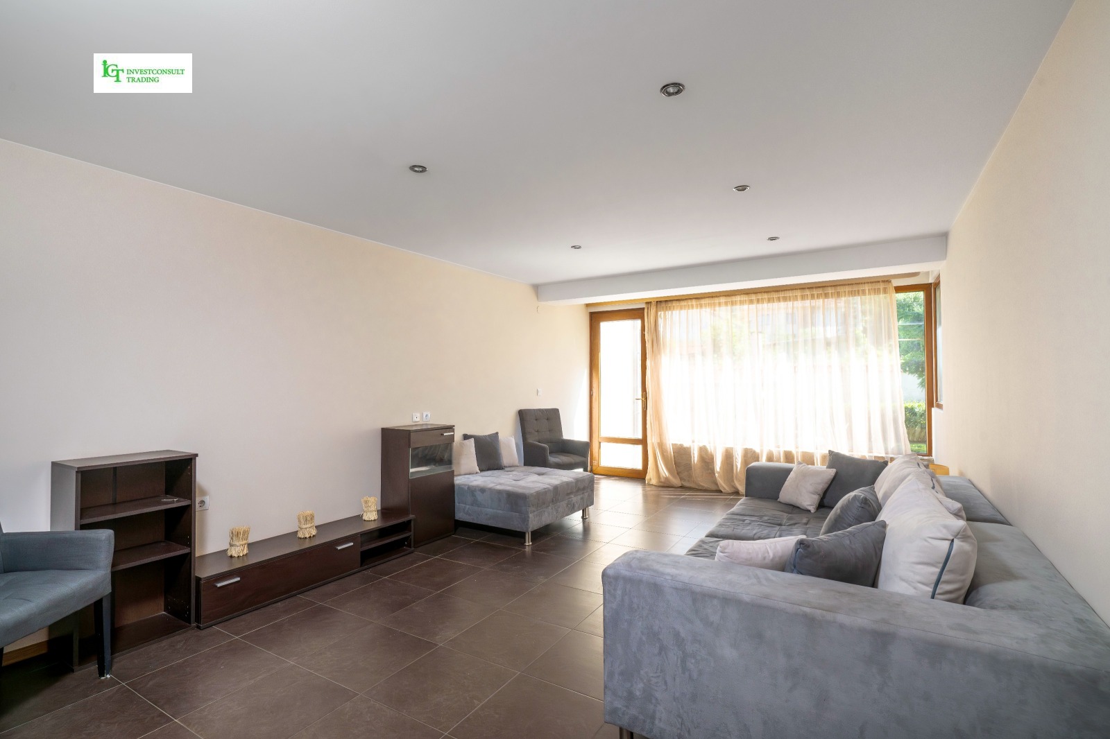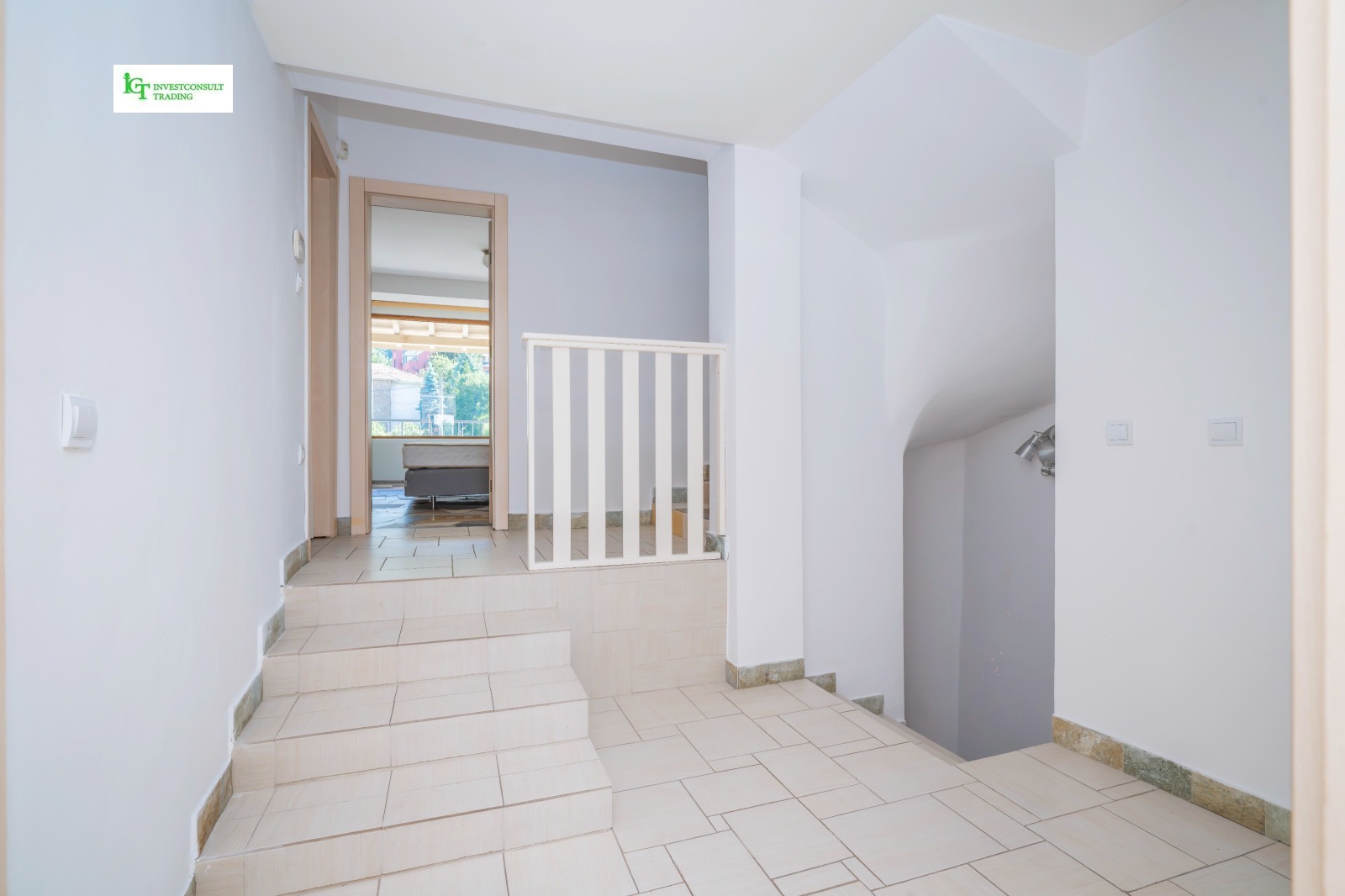 'Инвестконсулт Трейдинг' дава под наем отлична къща на ул. Чукар, в непосредствена близост до бул. Пушкин и Резиденция Бояна. Мястото е изключително тихо и спокойно, и в същото време е близо до бул. България и Околовръстен път, където има излас за всички посоки. Къщата се намира в общ двор с друга къща близнак и се ползват общо барбекю, двор и външни паркоместа. Състои се от 4 етажа: на к. 0 има гараж, котелно помещение с котле на газ или ток, склад; ет.1 - кухня, хол, баня с тоалетна, гардеробна и тераса; ет.2 - спалня с тераса към София, баня, тоалетна, втора спалня с тераса към планината; ет. 3 - две спални с емпорета, всяка стая има тераса, баня с тоалетна, мокро; ет. 4 - стая за офис с тераса. Къщата е след освежителен ремонт в отлично състояние и обзавеждане. Всички стаи са изключително светли и просторни, с хубава панорама. Къщата има СОТ и пълно окабеляване за интернет и кабелна телевизия. За огледи и информация Илиана -0888886609