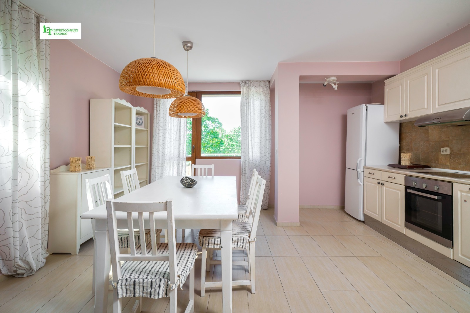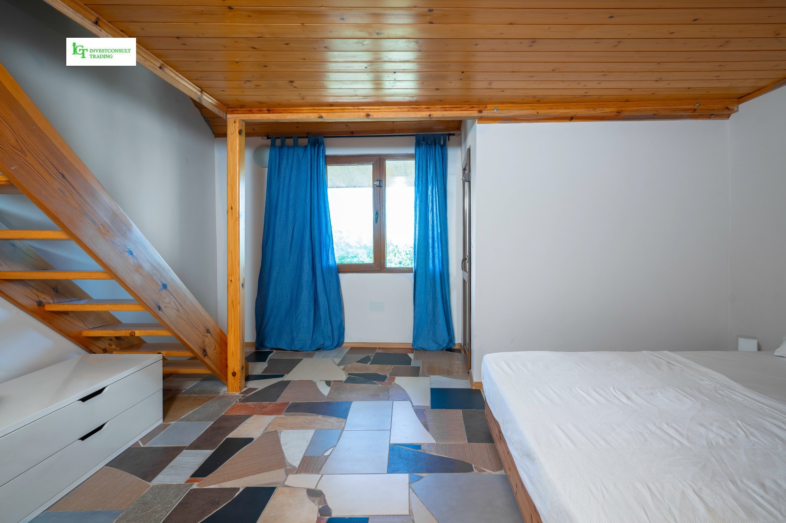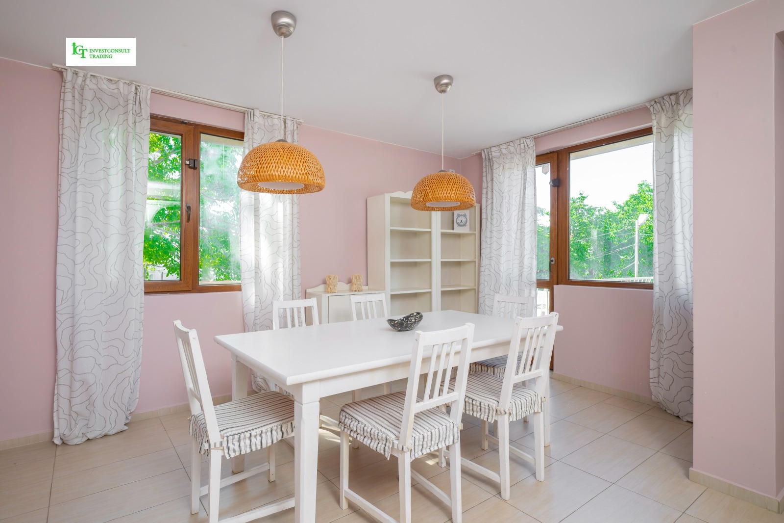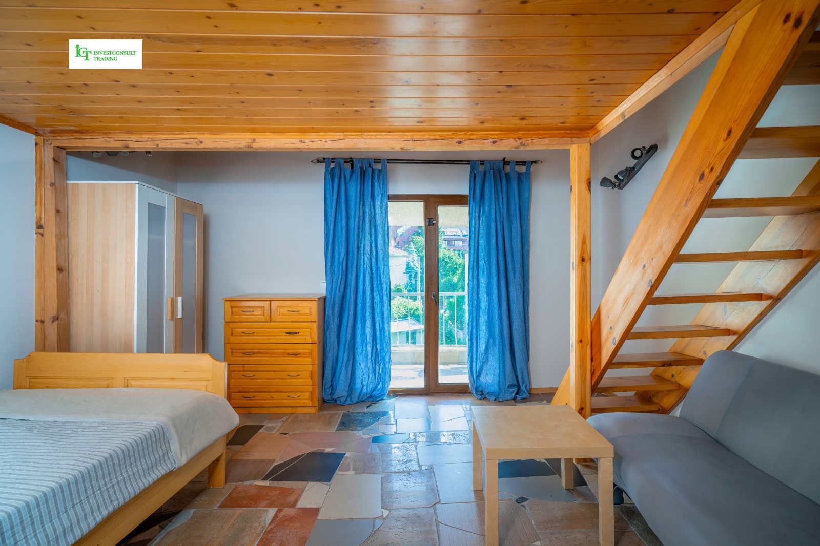 'Инвестконсулт Трейдинг' дава под наем отлична къща на ул. Чукар, в непосредствена близост до бул. Пушкин и Резиденция Бояна. Мястото е изключително тихо и спокойно, и в същото време е близо до бул. България и Околовръстен път, където има излас за всички посоки. Къщата се намира в общ двор с друга къща близнак и се ползват общо барбекю, двор и външни паркоместа. Състои се от 4 етажа: на к. 0 има гараж, котелно помещение с котле на газ или ток, склад; ет.1 - кухня, хол, баня с тоалетна, гардеробна и тераса; ет.2 - спалня с тераса към София, баня, тоалетна, втора спалня с тераса към планината; ет. 3 - две спални с емпорета, всяка стая има тераса, баня с тоалетна, мокро; ет. 4 - стая за офис с тераса. Къщата е след освежителен ремонт в отлично състояние и обзавеждане. Всички стаи са изключително светли и просторни, с хубава панорама. Къщата има СОТ и пълно окабеляване за интернет и кабелна телевизия. За огледи и информация Илиана -0888886609