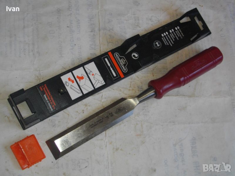 ОПИСАНИЕ на ново дърводелско длето размер 26 мм - 1 цол/инч. Цена 99 лв. Професионално. Производство - оригинално Холандия - Made in HOLLAND. NOOITCEDACT. Лого на марката - корона. Маркировки други - Sweisch Steel. Тип острие - право. Оригинална холандска поставка - опаковка. Длетото е ударно. Дължина - 275 мм.