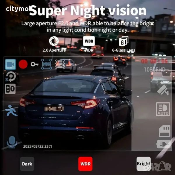 Благодарение на f/1.8 голяма бленда и WDR широк динамичен обхват), камерата за кола S1 се представя добре по отношение на прецизност и яснота на цветовете, независимо дали я използвате денем или нощем.
