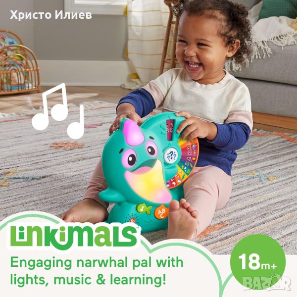 Малките деца могат да се потопят в ученето с музикалната играчка Linkimals Learning Narwhal от Fisher-Price. Докато децата се въртят и натискат, техният приятел нарвал ще светне, докато забавни песни и фрази учат азбуката, речника, броенето от 1 до 20 и много други. Има и интерактивен режим на тест. И когато Narwhal се срещне с други приятели на Linkimals, те светят, говорят, пеят и играят заедно! (Допълнителните играчки се продават отделно и в зависимост от наличността.)