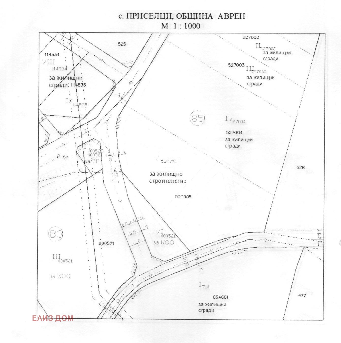 'Елиз дом' предлага парцел 2600 кв.м срещу обезщетение. ПУП. Ток и вода на граница. Асфалтов достъп, на 300 м. от главен път.