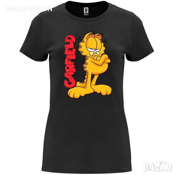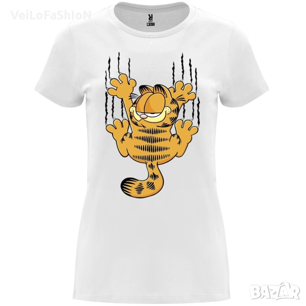 Новa дамска тениска в бял цвят с Гарфилд. Произведена от 100% памук с плътност на тениската 170гр./м². Тениската е с двуслойно деколте, странични шевове и подсилено двойно покритие на шията и раменете. Подходяща както за ежедневна употреба, така и за спорт или тренировка в свободното време.