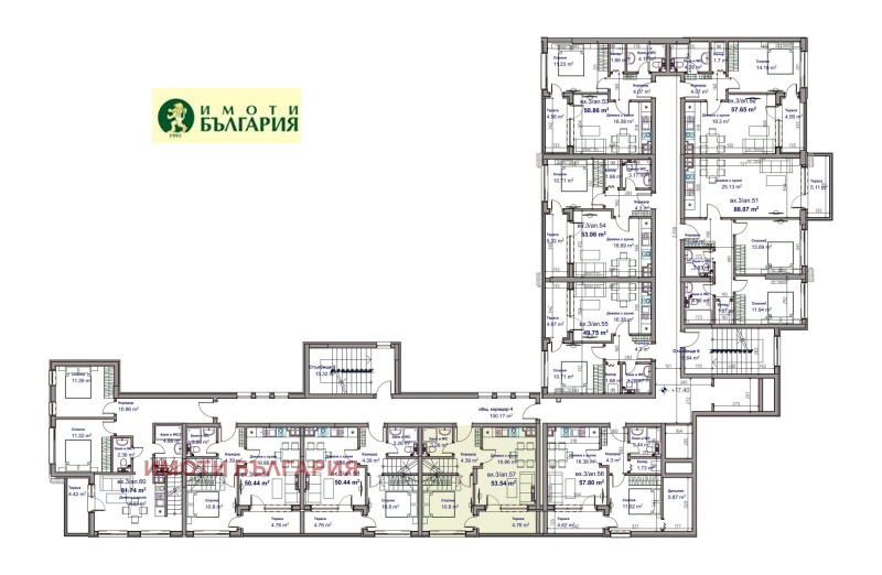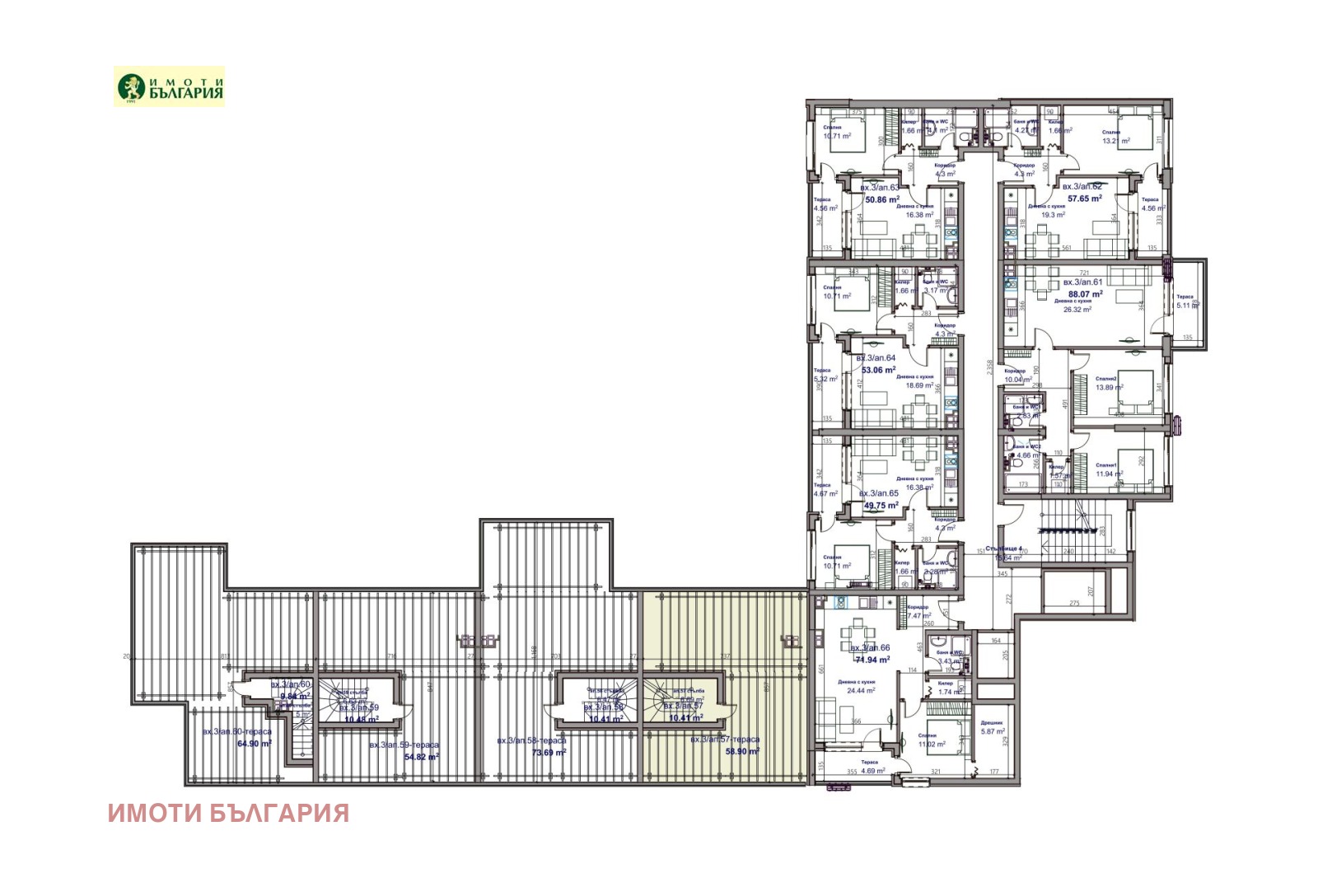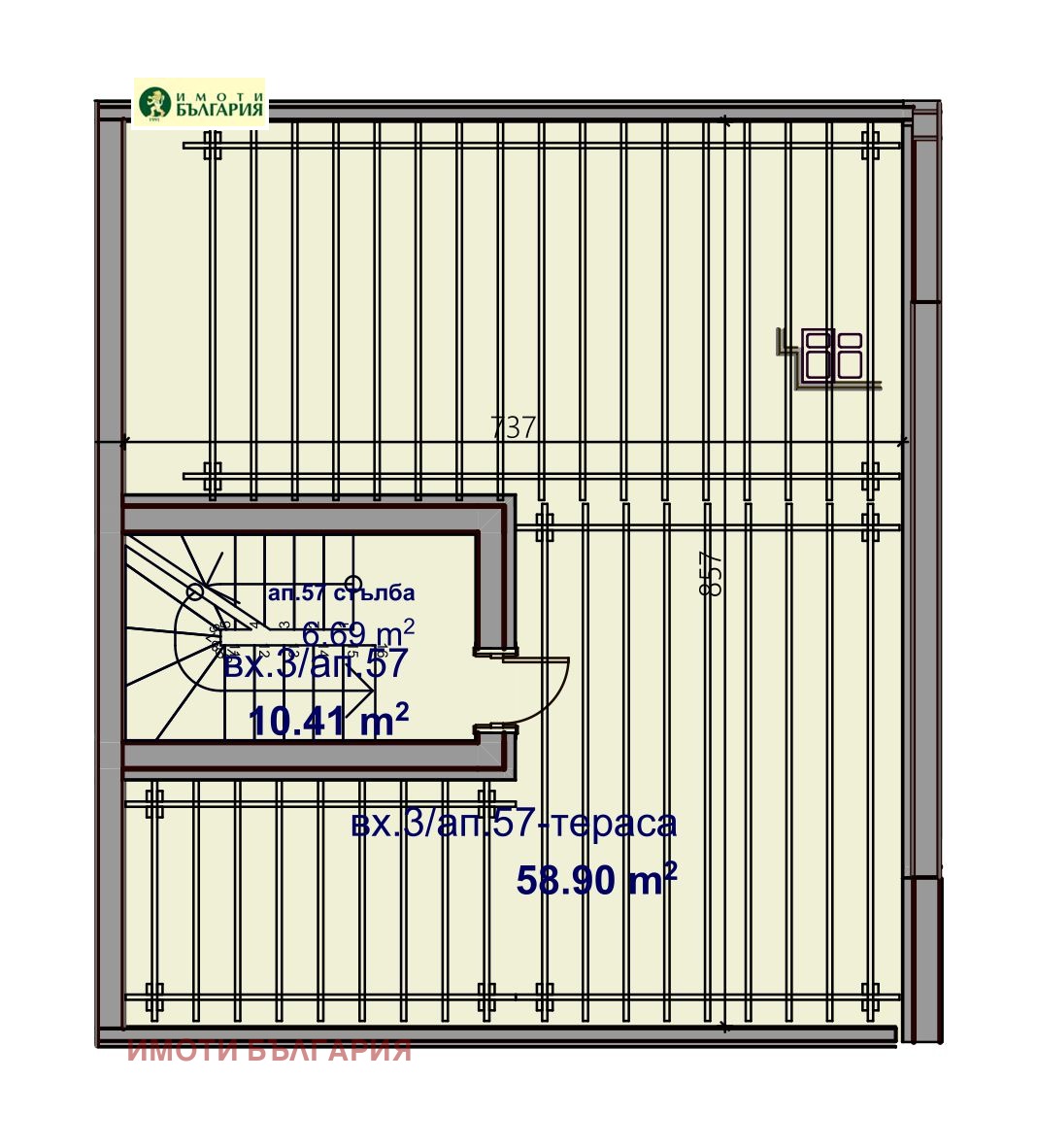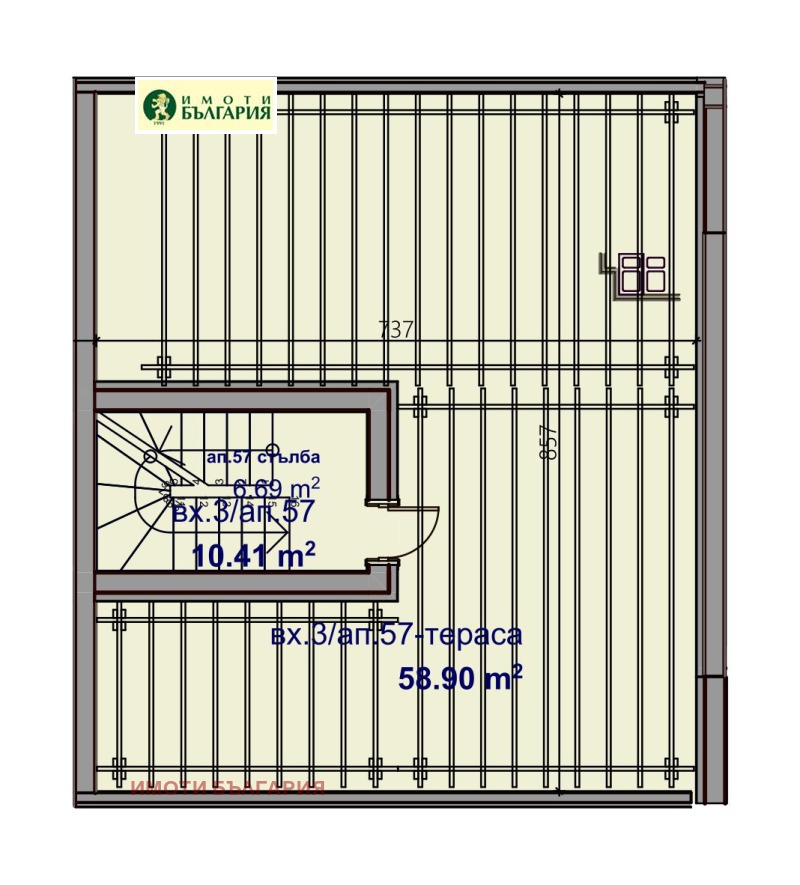 Ап. 57 във вход 3, на ет. 7 и 8 южен
