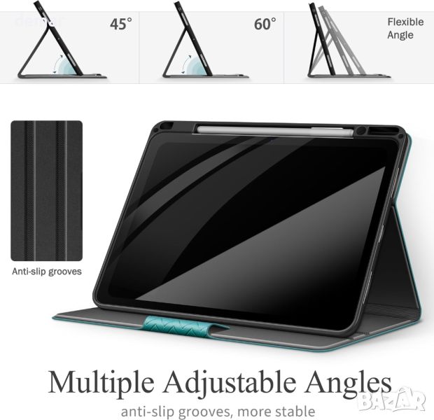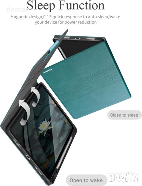 Apple Pencil Pro & Apple Pencil (USB-C), поддържащ безжично зареждане без премахване на кутията и има отвор за лесно отстраняване на молива. Изработен от висококачествена PU кожа и мек микрофибър, той е издръжлив, водоустойчив и лесен за почистване. Гъвкавият TPU заден капак позволява лесно инсталиране и премахване, докато магнитното затваряне гарантира, че iPad остава сигурно затворен, предотвратявайки загуба на захранване.