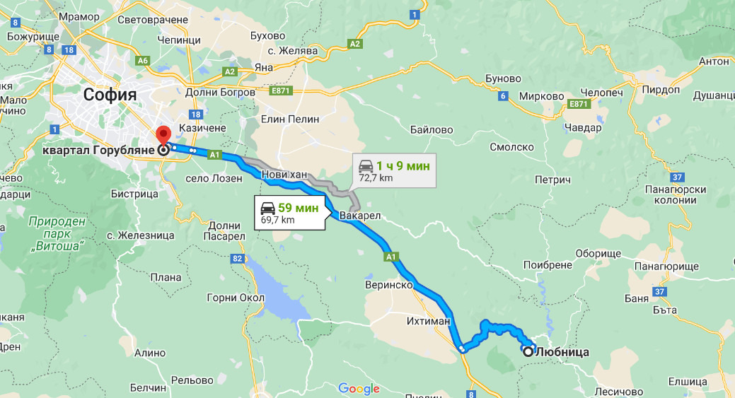 - на час път с кола от гр. София-60 км. , на 30минути от магистралата