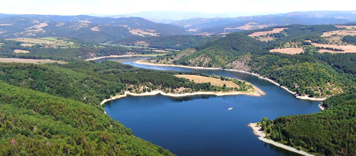 - до асфалтовия път , гора и язовир.